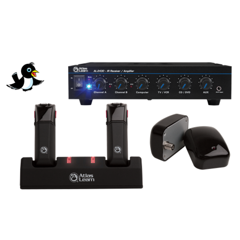 The Atlas Learn MAGPIE2-2 complete kit is the ideal solution for larger classrooms or boardrooms where two microphones are required. The kit includes one (1) AL2450 amplifier/receiver, two (2) AL-MAGPIE wireless microphone, one (1) AL-MAGPIE-NEST charging station, two (2) AL-IRDS infrared dome transmitters, and twenty (20) meters of coaxial cable to connect the AL-IRDS with the AL2450. This kit allows you to get all the benefits of the Atlas Learn system without paying for parts or accessories that are not needed.AtlasIED offers a full line of compatible in-ceiling and surface mount speakers that can be used with an Atlas Learn system.